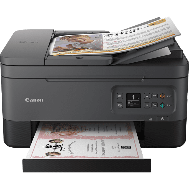 De Canon PIXMA TS6150 is een All-in-one inkjet printer voor thuisgebruikers. Naast wifi verbind je de printer via Bluetooth met je smartphone, tablet en laptop of je print op afstand vanuit de cloud. Dankzij 5 aparte inktcartridges waaronder 1 voor speciale fotozwarte inkt print je afbeeldingen met groot kleurbereik. Bovendien zijn foto's scherp dankzij de afdrukresolutie van 4.800 bij 1.200 dpi. Ook ondersteunt de printer randloos printen en speciaal vierkant papier tot maximaal 13 bij 13 centimeter om bijvoorbeeld je Instagram foto's te printen. Dit fotopapier plaats je in de speciale houder aan de achterzijde, zo houd je foto's en documentpapier gescheiden. Het grote 7,5 centimeter kleuren touchscreen is handig om direct instellingen voor kopieën en scans aan te passen. Wil je papier besparen? Schakel dan automatisch dubbelzijdig printen in.