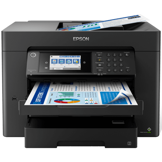 Naadloos schakel je tussen printen, scannen, kopiëren en faxen, waardoor je efficiënt kunt werken. Dit alles wordt mogelijk gemaakt door de geavanceerde PrecisionCore-technologie van Epson, die zorgt voor razendsnelle afdrukken van hoge kwaliteit. Met een afdruksnelheid van maar liefst 24 pagina's per minuut voor zowel zwart-wit als kleur, ben je altijd verzekerd van snelle resultaten.
